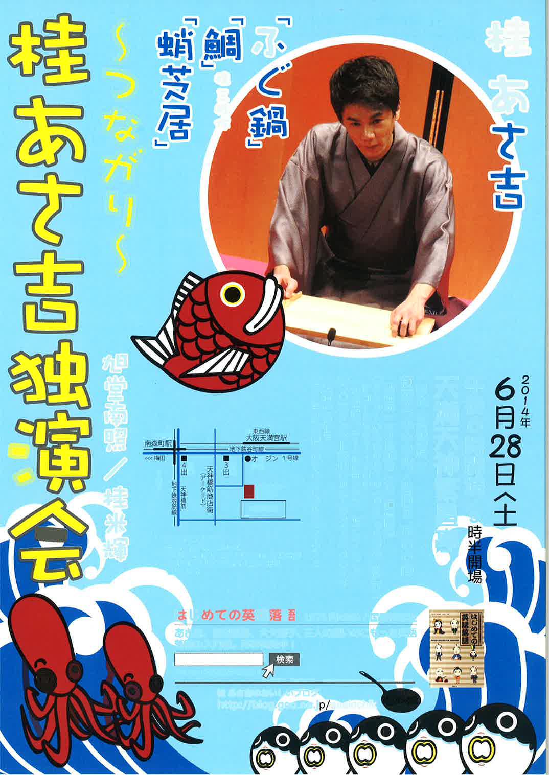 6月28日、『桂あさ吉 独演会』に出させていただきました。真剣に聞いてくださるお客様のパワーに満ちた素晴らしい会でした。私は、