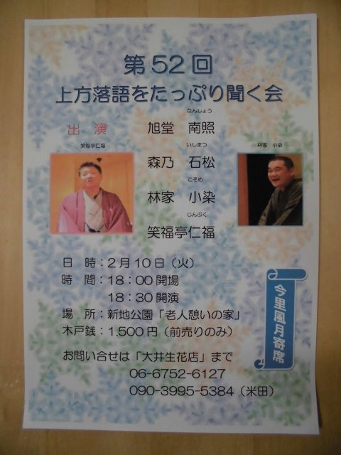 1月10日には、越木岩公民館寄席、19日は芦屋「竹園ホテル」で一席。
